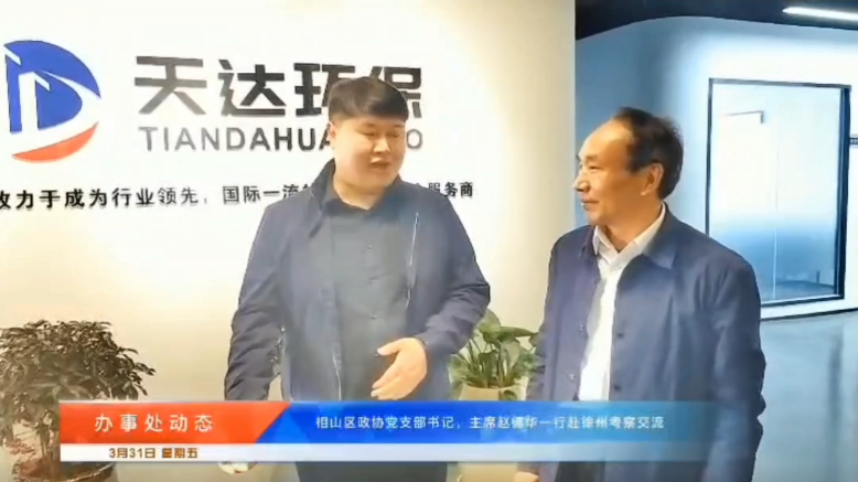 3月31日,安徽省淮北市相山區(qū)政協(xié)主席趙德華一行領(lǐng)導(dǎo),蒞臨江蘇天達環(huán)保設(shè)備有限公司考察交流,天達環(huán)保負責(zé)人張羅通熱情接待,并表示熱烈歡迎。